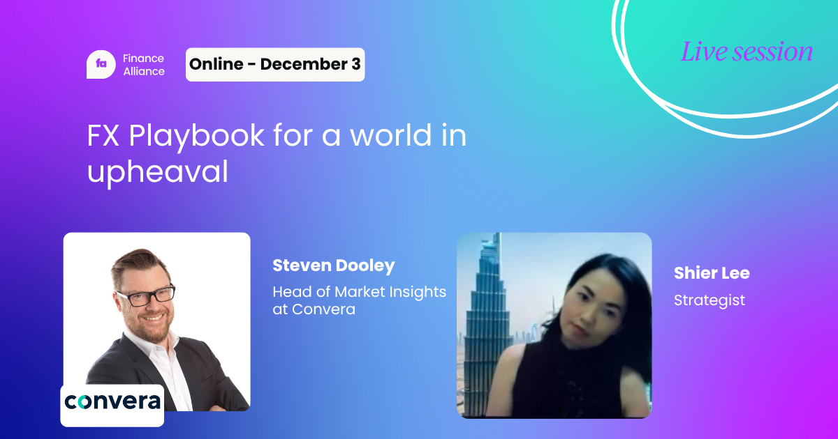 Join Convera’s exclusive live session on Wednesday, December 03 for an in-depth look at the findings from our Are You Ready 2026 report, a sharp, forward-looking analysis of the economic, geopolitical, and FX forces reshaping global markets.